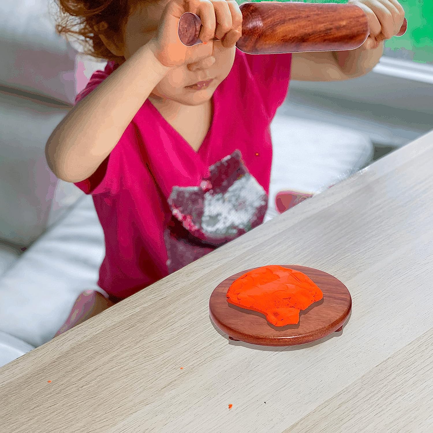- A beautifully handcrafted round wooden rolling board & pin.